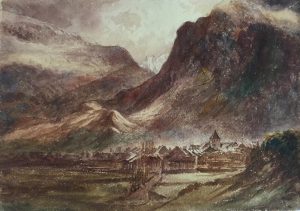 1853 is the first proven visit to the Pyrennees, around Pau, an area he was to return to several times over the next 10 years. On each occasion one can find dramatic mountain views – ‘God’s works’ as Petit would call such natural beauty, in contrast to which man’s architecture cannot be compared